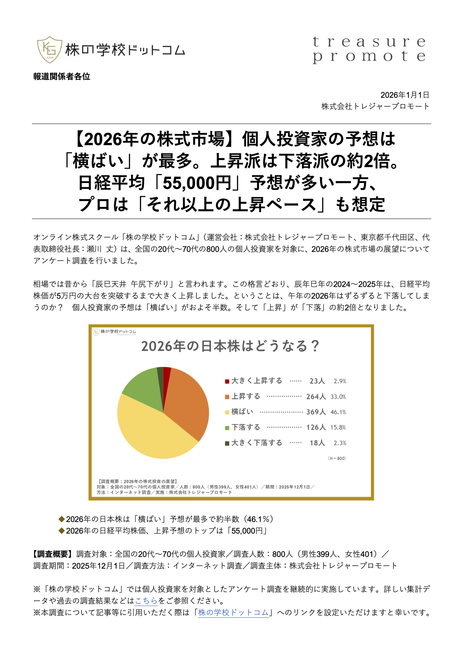 【2026年の株式市場】 個人投資家の予想は 「横ばい」が最多。上昇派は下落派の約2倍。日経平均「55,000円」予想が多い一方、プロは「それ以上の上昇ペース」も想定