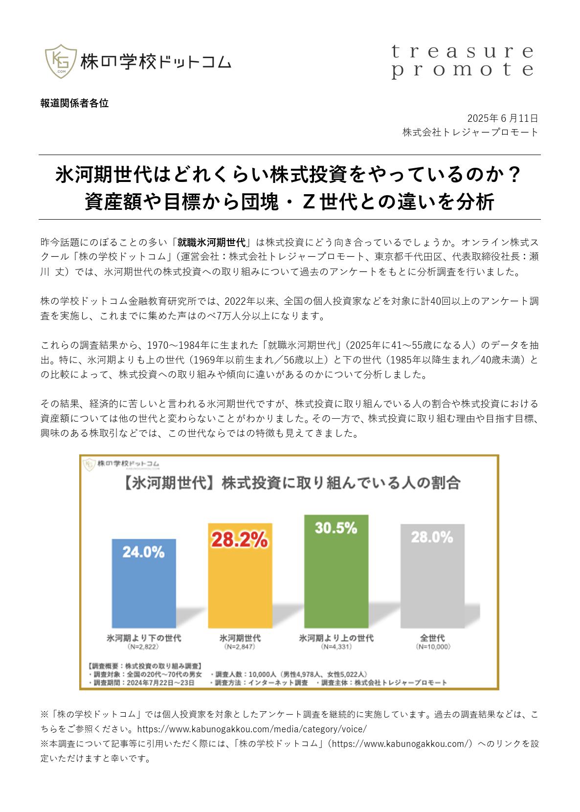 氷河期世代はどれくらい株式投資をやっているのか?資産額や目標から団塊・Z世代との違いを分析