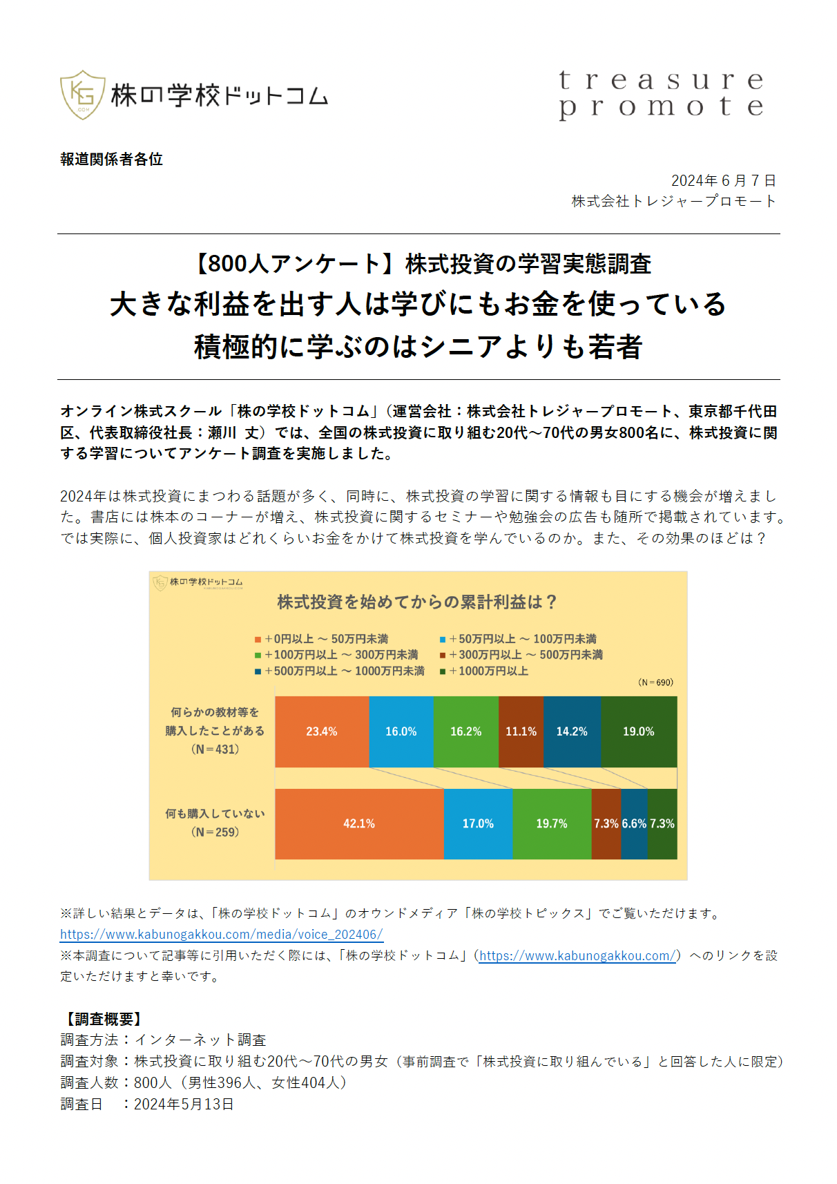 【個人投資家800人調査】株式投資の学習 実態調査大きな利益を出す人は学びにもお金を使っている積極的に学ぶのはシニアよりも若者