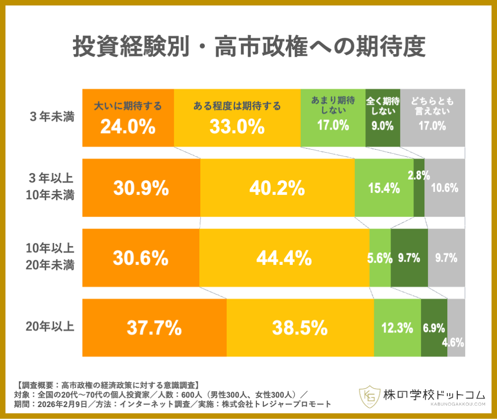 - 投資歴20年以上は「大いに期待する」が最多の38%